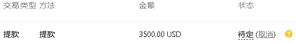 7、点击出入金历史,,里边会有最近的入金提款记录。时刻关注订单处理,提现订单处理后,会由待定转为已接受,该笔金额在交易账户里扣除,等待到账就行了,整个处理时间需要1-3个工作日(周一到周五)。如果不想提现了,可以点击取消。如果由于填写错误提现失败,那么金额会返还到账户总额,资金不会有任何损失,那时候再从新提现就行了。